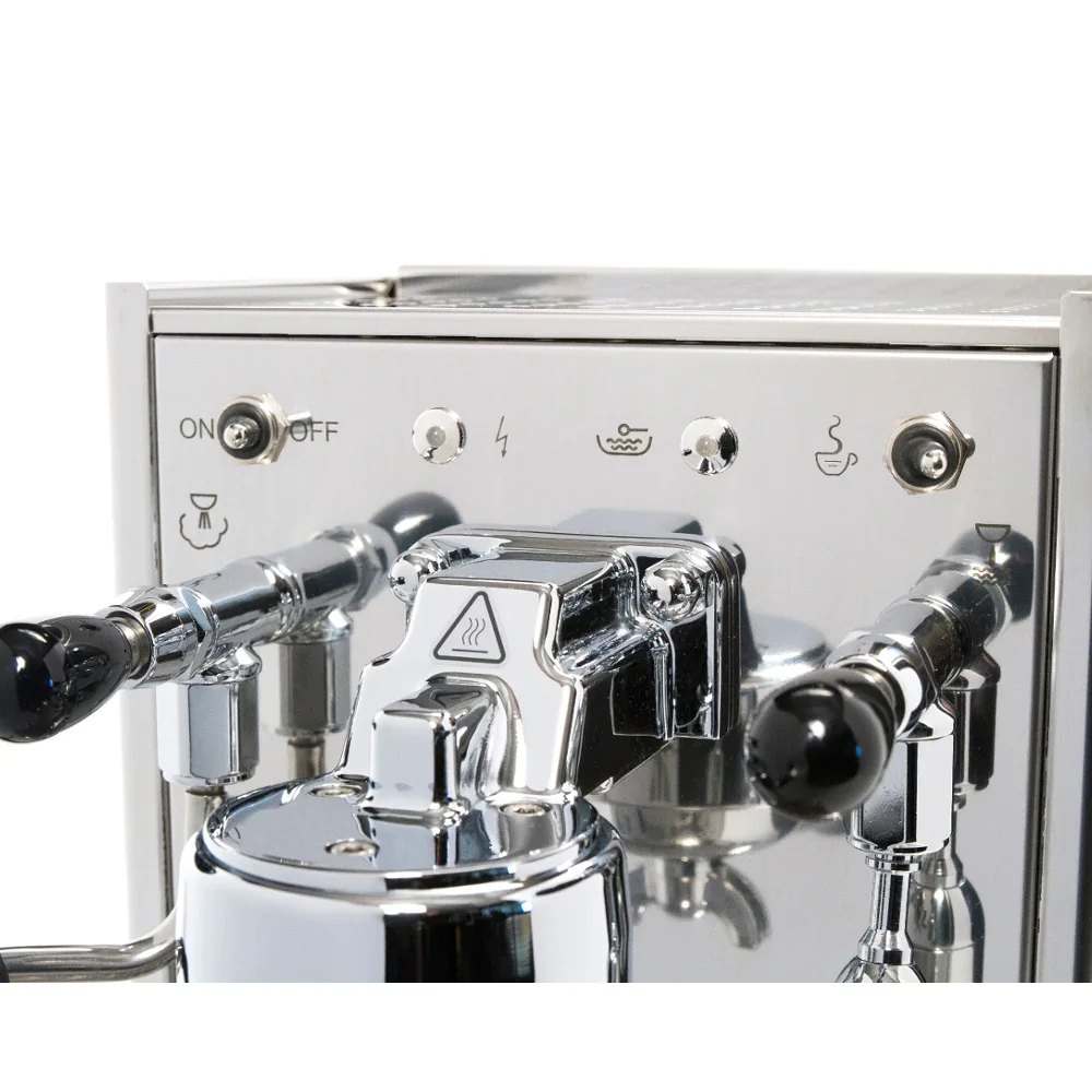 Diseño compacto y portátil con componentes profesionales, Capaz de erogar y emulsionar al mismo tiempo, Semiautomática, Agua caliente para infusiones, Manómetro en caldera y grupo, Bomba de vibración Temperatura constante en uso continuo Sistemas de seguridad incorporados,
